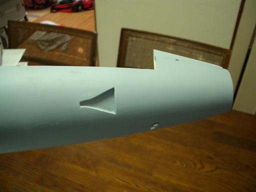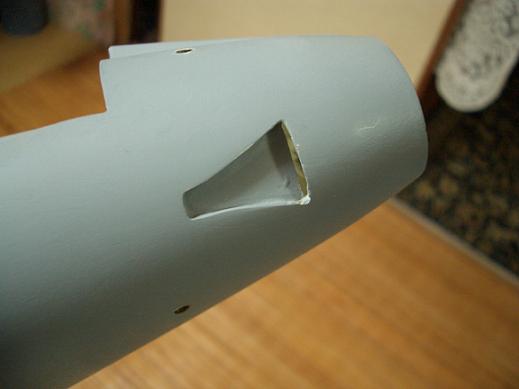 ここから前方5cm移動し後端から8cmに作り直し。これで大夫良くなりました。結果的にダクトはもう少し大きくても良かったかな?と思っています。実際推力を計ったわけでは無いですが体感的には上昇。 |