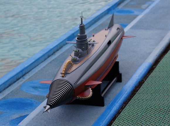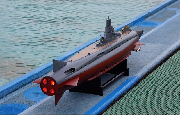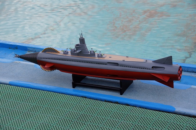 左側前部メカ室 中央バラストタンク・シュノーケルスラスター式・ガス併用 シュノーケルが水面から出た瞬間、一瞬にして排水 右側後部メカ室 |