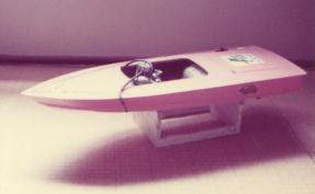 V型艇の時代は終わり中央部が平らになったスキータイプが主流になってきました。この頃から排気量別で4クラス有ったのが3クラスになりました。77年以降決勝進出までは行くのですが入賞は難しかったです。高ニトロの燃料を使用するためグロープラグも1ヒートしか持たないという金食い虫にバイト代は全部消えて息ました。写真はHRBC所属H氏のBクラス艇。★ ヒートレース