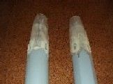 FRP製のハル(船体)。本来右側の丸い方が前になるのですが轟天号要のドリルをどうしても太くせざるを得ず見た目が悪いため、細くなっている後ろ側を前にして使う事に決定。これだけで2週間は悩みました。 ハルの後ろ側を切り取りFRPで別に作ったジェット推進のコーン部分を切り接ぎしました。 内径19mmのアクリルパイプをへの字型に突き合わせた水流ダクト。塩ビ管を曲げて作ろうと思いましたが、セメダインEP001ならアクリルでも付くんではないかと突き合わせ接着してみました。結果強硬に接着されて大成功。上下4本がポンプ迄伸びています。 先端部(キットで云う後端部)の断面は楕円形になっているためドリルとの接合部が合いません。そこでVカットを何本か入れ輪ゴムで絞り込んで円に近くなるようにしてから裏からクロスを当ててエポキシで固めました。エポキシは厚めに盛りましたので後はガシガシ削って丸く仕上げます。 ドリル駆動用のギア。その辺に転がっていたミニ4駆のギアを3枚使いFRP板を合わせて作りました。ドリルは動力系のモーターとは別にミニッツレーサーのモーターを使って駆動する予定です。 大変苦労したドリル。紙粘土FRPで作りましたがバランスが悪くてとても回転させられるものにはなりませんでした。結局、円錐形の木片に発泡塩ビの板を巻き付けて瞬間接着剤で仮止めし最後はエポキシで固めました。先端部分は曲がりがきついためポリパテで成形。3条ネジのためピッチを合わせるのは至難の業でかなり目の粗い物になってしまいました。さて、センター出しですがほぼ中央と思われる所にあらかじめ細い穴(ハンドドリル)を開け、後は根性で○やすりを使って少しずつバランスを取りながら穴を大きくしていきました。ボール盤が有れば楽できたんですが(^^; ぁぁしんど 動力はキットのものを(380モーター)とりえず取り付けましたがパワー不足の様な気がしてモーターやギア比を変えられるように手を加えるつもりです。 潜舵のリンケージとドリル駆動ユニット部分が出来ました。潜舵はリンケージのみキットのものを利用し1mm真鍮板で半田付けです。面積はキット通りでこの辺は深く考えなくても良いキットの強みです。ドリル駆動用は市販の田宮のギヤボックスを使ってます。ミニッツレーサーのモーターにピッタリだったので楽出来ました。 艤装品の製作です。