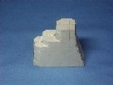 前部のノコギリ状カッターは1mmプラバンを3枚合わせ、中央のギザギザ部分はカッターナイフで少しずつ削り込んで製作。砲塔は、のれん掛け棒の先端の丸い木材を半分に切り真鍮パイプの砲身を差し込んで接着。セールの製作。比較的柔らかいファルカタ材という木を使って大まかに削った所です。その後大体の形に仕上げエポキシをたっぷり塗って木材に染み込ませます。 サフェーサーを塗って研ぎを入れ小さな凹みはラッカーパテで埋めて仕上げます。砲台の部分は発泡塩ビで作りました。