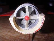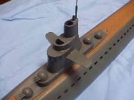 先ずはAのセールをFRPで作り直す事です。元のセールを雄型にして前回成功した紙粘土工法で雌型を作ります。今回はポリエステルを使わずにエポキシ樹脂を使用。エポキシは臭くないし肉厚が出るので使いやすいです。写真は積層が終わり型抜きした所。多少の凸凹はポリパテで仕上げます。 @のバラストタンクの装備に入ります。キットのオプションで燃料タンクを使った180ccのタンクと電動ポンプ。元はスイッチをサーボで動かす仕組みでしたがスペース的に余裕がないのでサンワの小型アンプを制御に使います(手前の黒い物)。説明書によるとタンク満水で15mm喫水が下がるらしいので、現在喫水は甲板ひたひたですから満水で完全に潜ってしまう事になります。再度喫水の調整が必要ですね。只今船内のレイアウトをすべて変更するためバラバラの状態です。 改装Aの艦橋部分が出来上がりました。何も変わりがないように見えますが上部に穴を開け空気が溜まって浮力が付いてしまうのを押さえます。今回潜望鏡等は省きアンテナとシュノーケルのみのシンプルな作りとしました。砲塔は紙粘土を雌型にたこやきの様にエポキシを流し込み作製。 左がハウジング。ベンチュリ形状を取りたかったので自作を考えましたがホームセンターでトユの継ぎ手を発見。開口部を削るだけで上手く真円の物が出来ました。中央は整流板(ステーターベーン)で右はファン(インペラ)。共にFRPで自作しましたが大変苦労した所です。この部分だけの製作方法を近くアップする予定です。 右が前回使用のダクテッドファン。左が今回製作の物。ダイヤ(直径)は小さく、翼面積は大きく、ピッチは緩やかにという方向で作ってみました。比較するとピッチの差が歴然。