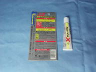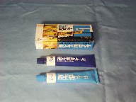 普通のエポキシ系接着剤 コニシのボンドEセット。速乾型は硬化後の研磨時のタッチが好きで無いので10時間硬化型を使ってます。硬化まで時間が有るため隙間迄隅々と接着剤が行き渡るし、硬化後もサクッと削れるので好みです。冬季にはドライヤーであぶって柔らかくし完全に練り上げる様にして混合すると硬化後のタッチは良くなります。 RCサブに最適の接着剤。セメダインEP001です。難接着材料用40分硬化型。特徴は強靱にして柔軟な特性を持ち強い接着から信頼性の有る接着へと概念を変えた弾性接着剤とされています。シリコン系エポキシ接着剤といえるでしょうか。A液B液とも無色透明ですが混合すると乳白色になり硬化後は弾力の有る硬質ゴムのようになります。振動の伝わる動力部分や完全に防水したい部分に使用してます。張り合わせの時少々隙間が開いていても完全に埋まってしまうので、私の様な大雑把な工作力しか無い者でも楽できます。只、通常のエポキシ接着剤の倍程高いのでやたら使う訳にはいきません。実用作業時間は20分と書かれていますが実際は10分程度でしょうか。この辺も少々使い辛い所は有ります。 高機能弾性接着剤セメダイン スーパーX。世界で初めての粘着接着機能を採用した弾性接着剤で今まで諦めていた材料でも良く付くとされています。1液性で硬化後も肉持ちが有る程度有り防水効果を持たせる事も可能です。接着する物の両面に塗り5〜10分後に粘着性が出てから張り合わせる(昔から有る黄色いボンドの様な使い方)となってますが、私の場合接着面に多い目に塗りそのまま張り合わせて固定し1昼夜置いてます。隙間も埋まり防水効果が出ます。水物プラモにも適していると思います。